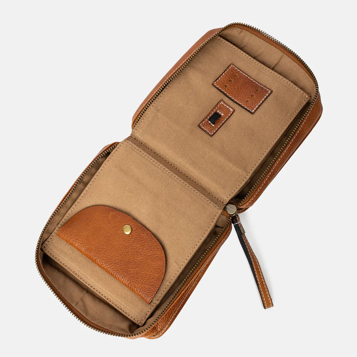 Fremstillet i Urban-læderkvalitet - et valset kolæder, hvor hver taske farves før overfladen færdiggøres, hvilket bevarer den rå læders naturlige struktur. Efter farvningen påføres et let lag voks, der giver en glat og blød finish med unikke detaljer.