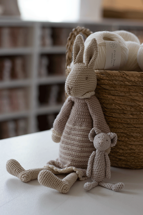 Kom og kram vores søde bamser og afprøv det fine hæklede legetøj.