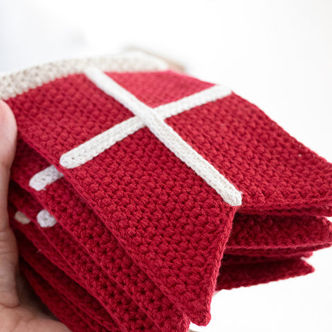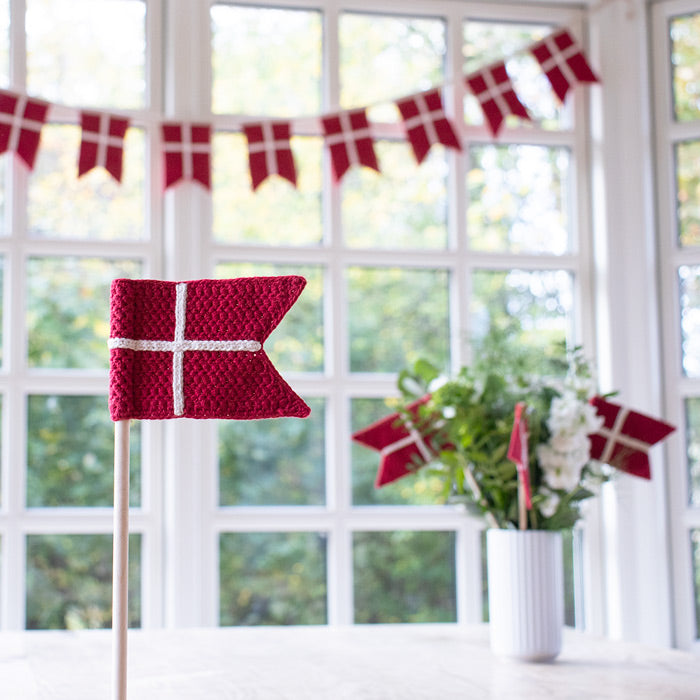Med kittet kan du hækle 1 flagranke, 3 flag på pind og 1 bordflag.