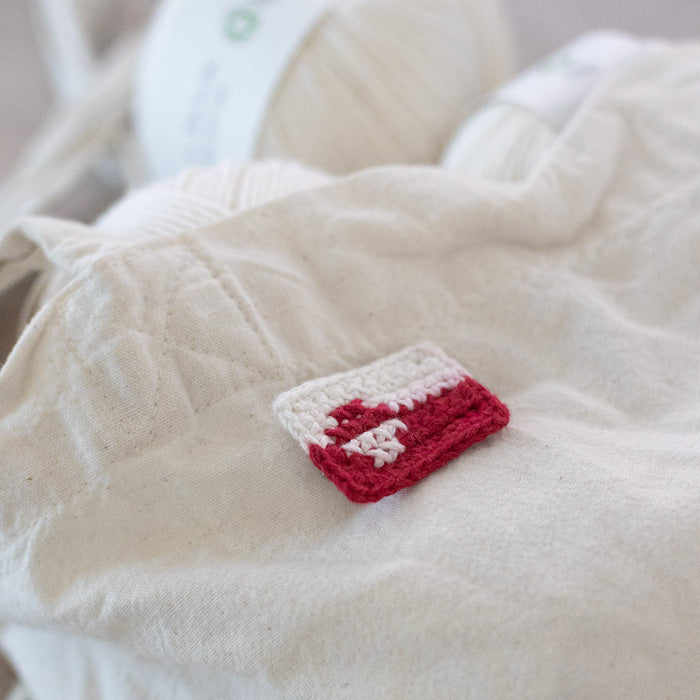 The flags are crocheted, and the motifs are embroidered on using simple cross stitches. An embriodery needle is included in the kit.