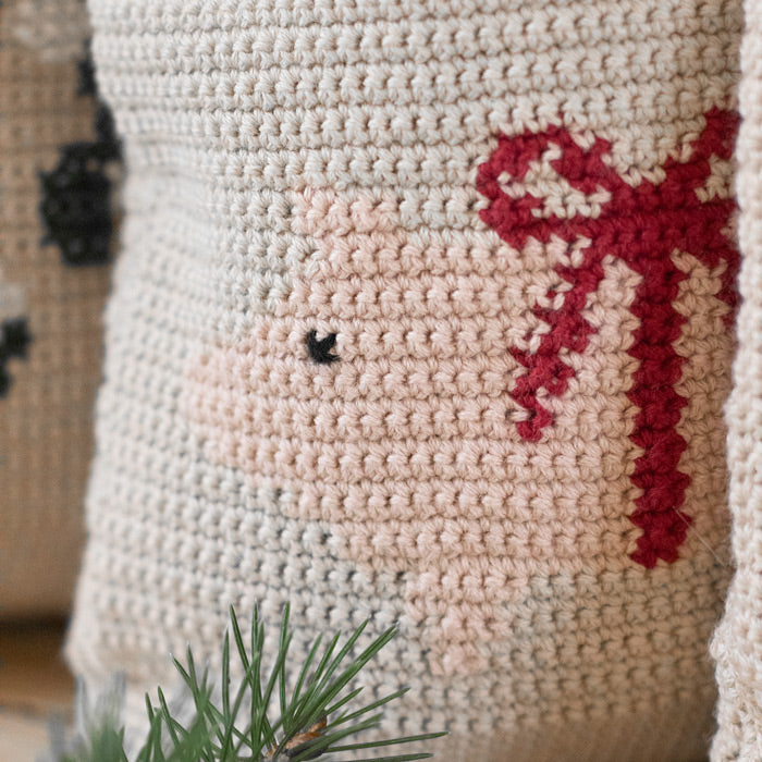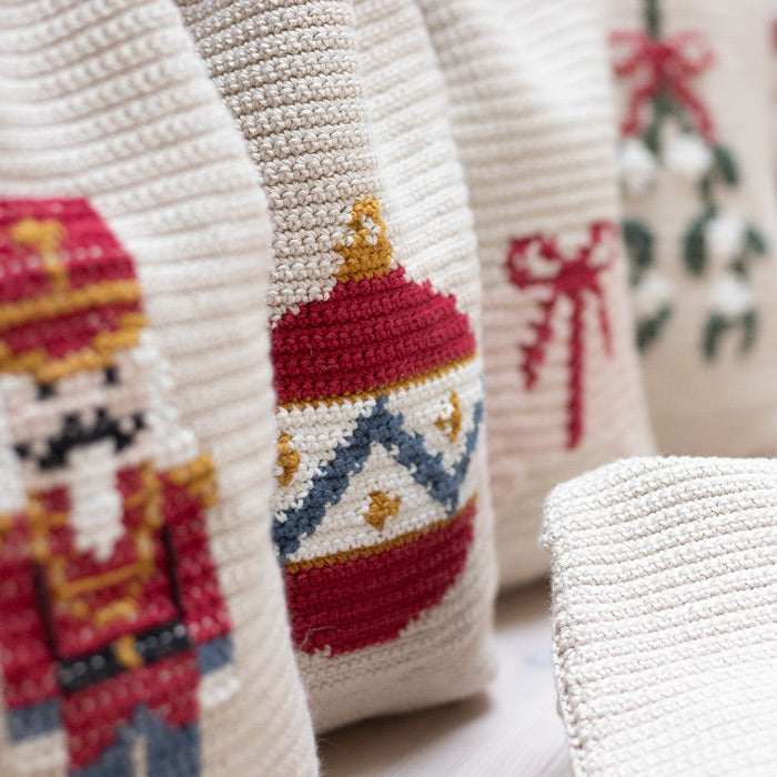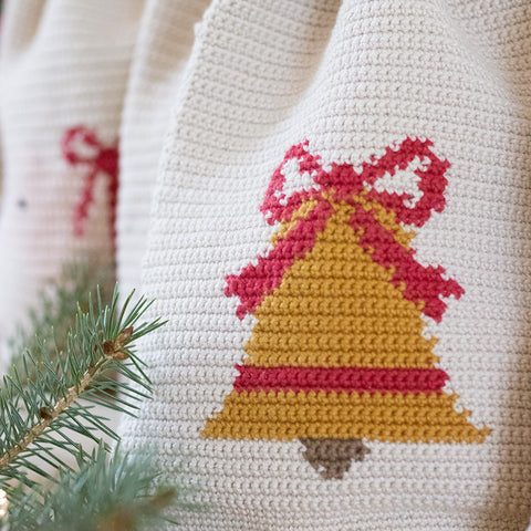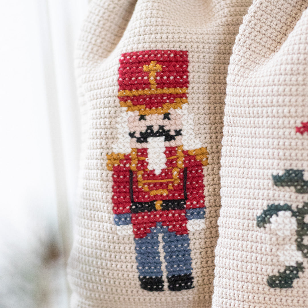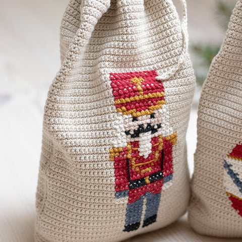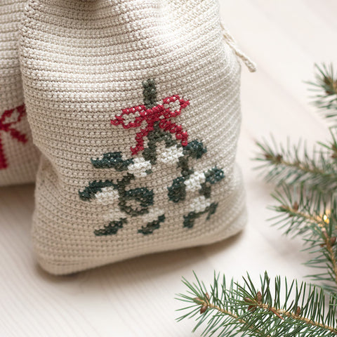 Sværhedsgraden bliver markant lavere, hvis mønstrene broderes på poserne med korssting i stedet for at hækles med teknikken jacquardhækling.
